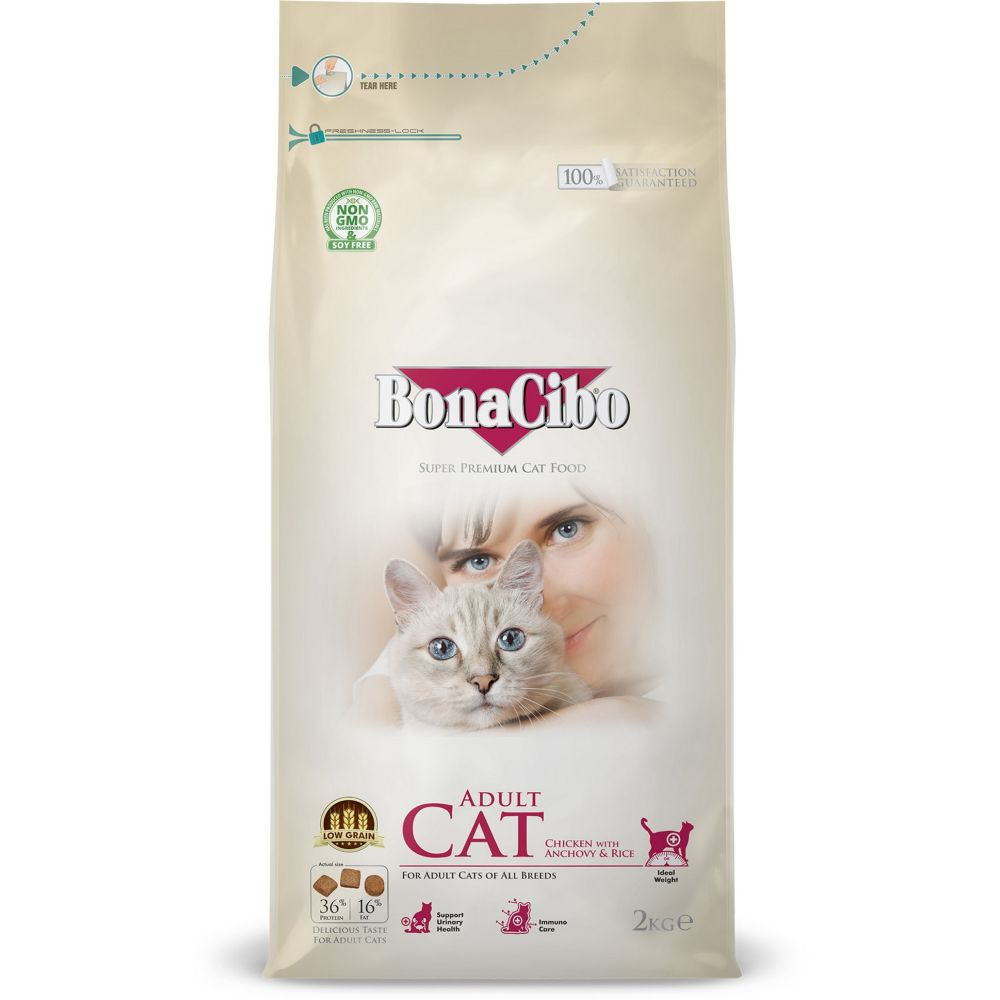 BONACIBO - Erwachsene Katzen - Huhn und Sardellen mit Reis - Trockenfutter - 2 k