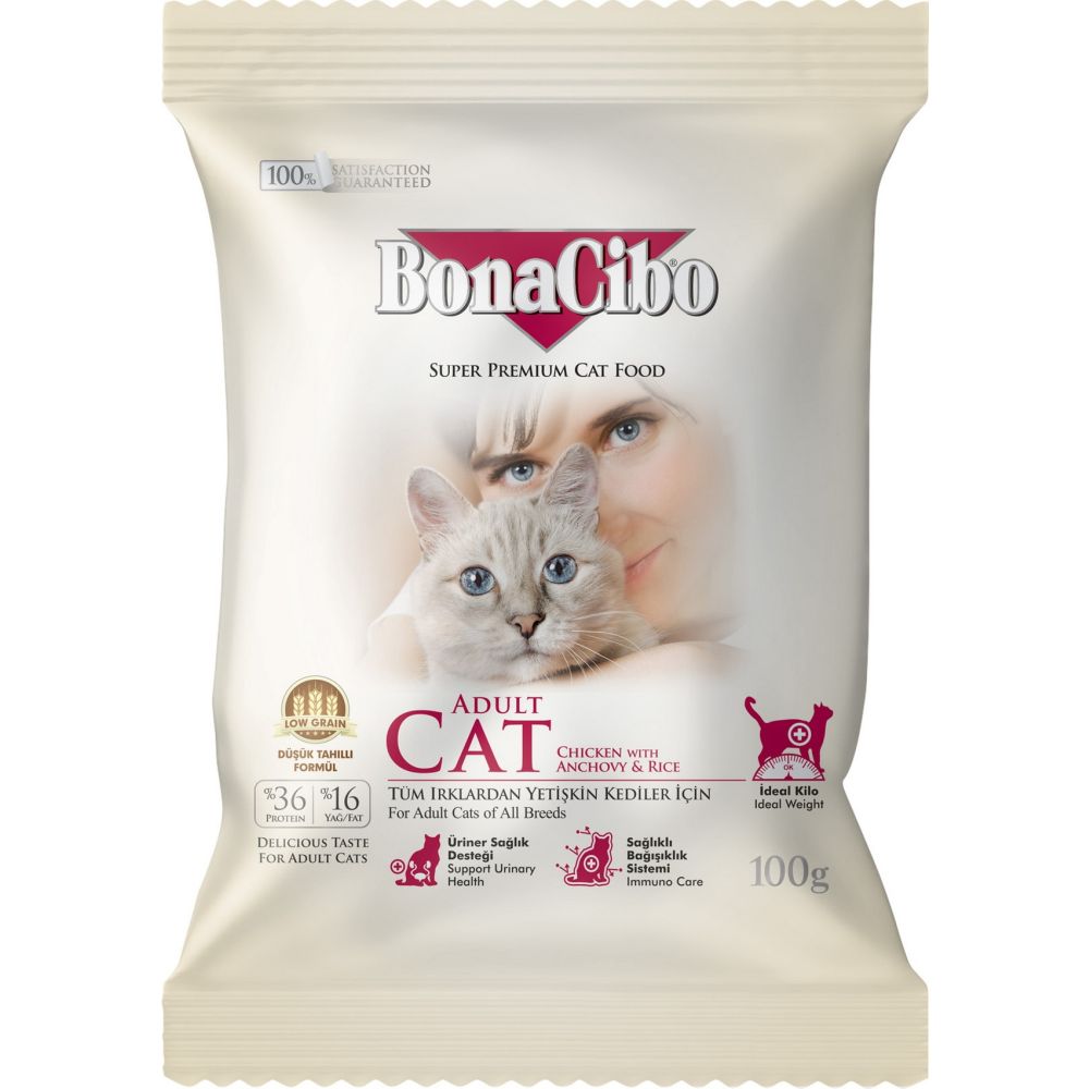 BONACIBO - Katzen - Huhn und Sardellen mit Reis - Trockenfutter - 100 Gramm