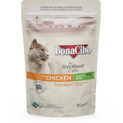 - BONACIBO - Erwachsene Katzen - Huhn in Gelee - Naßfutter - 400 GrammNormalpreis 1,59 € Sonderangebot 1,36 €Inkl. MwSt.