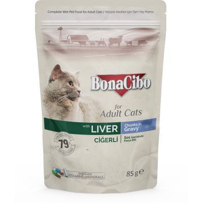 - BONACIBO - Erwachsene Katzen - Leber mit Soße - Naßfutter - 400 GrammNormalpreis 1,59 € Sonderangebot 1,36 €Inkl. MwSt.